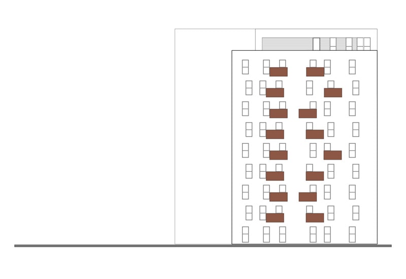 W ramach etapu zaprojektowano dwa budynki mieszkalne w układzie korytarzowym. Budynek G jest budynkiem wysokim 9- i 10-kondygnacyjnym, zaprojektowany, w układzie litery C. Narastanie zabudowy jest konsekwencją i kontynuacją przyjętego w budynku F układu tarasowego.