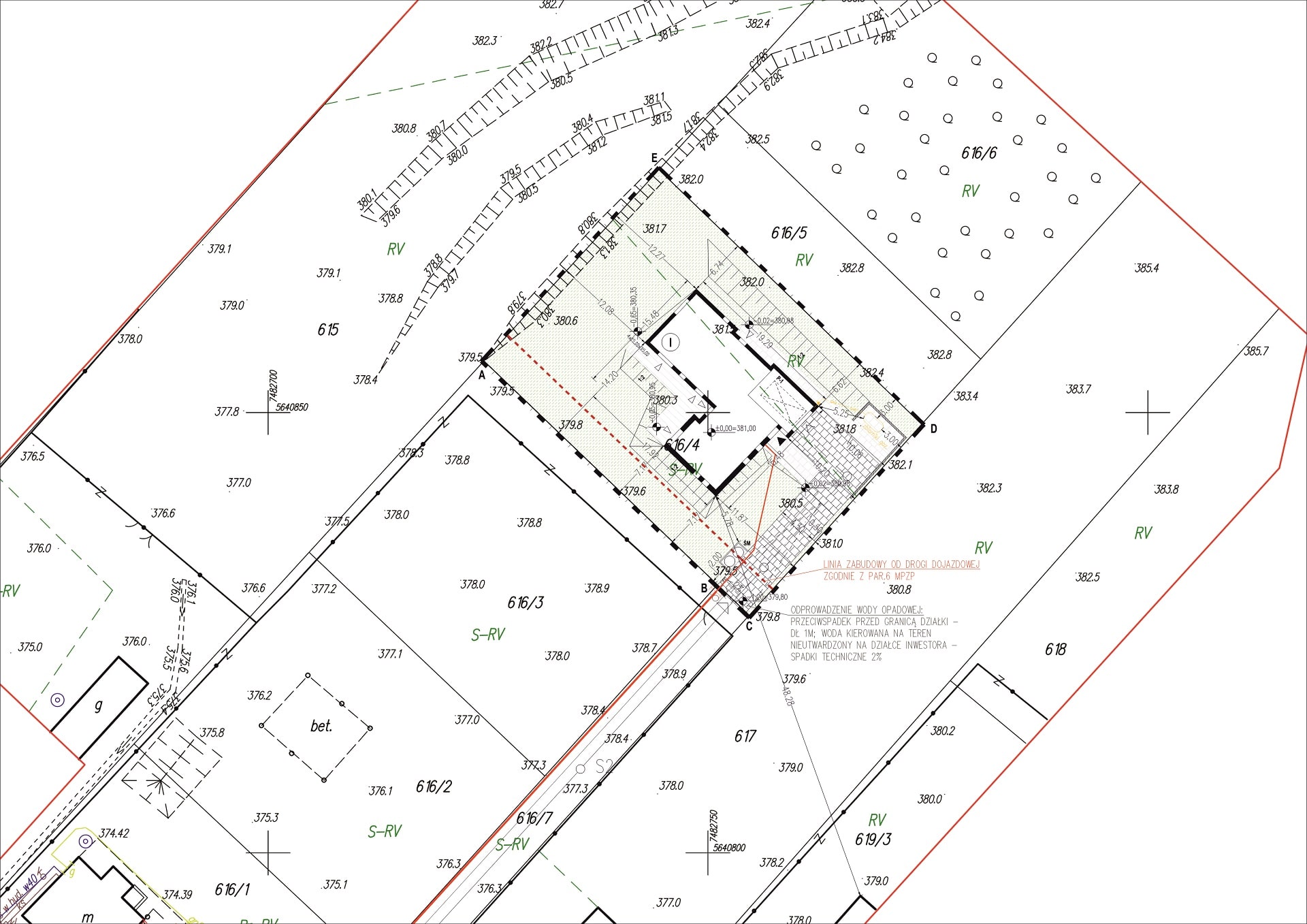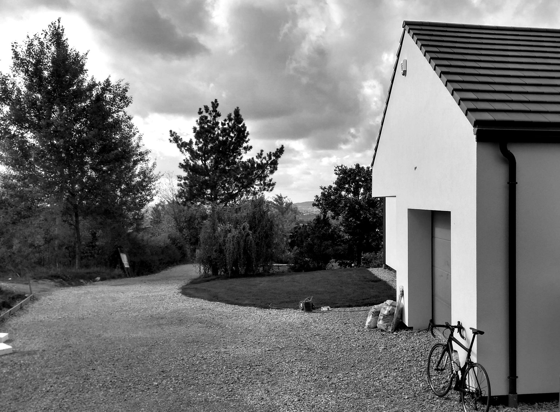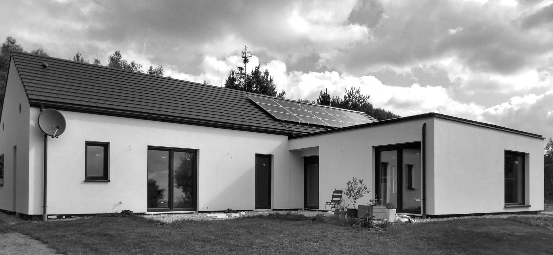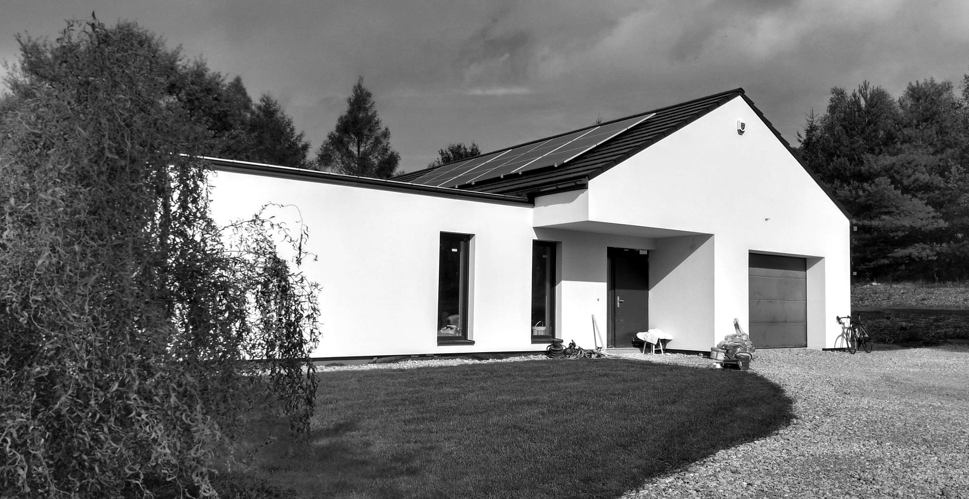 Dom zlokalizowany jest na widokowej działce w niewielkiej miejscowości pod Kielcami. Budynek posiada czytelną formę, która powstała poprzez połączenie dwóch brył – tradycyjnego domu z dwuspadowym dachem z płaskim, ceglanym „pudełkiem”.